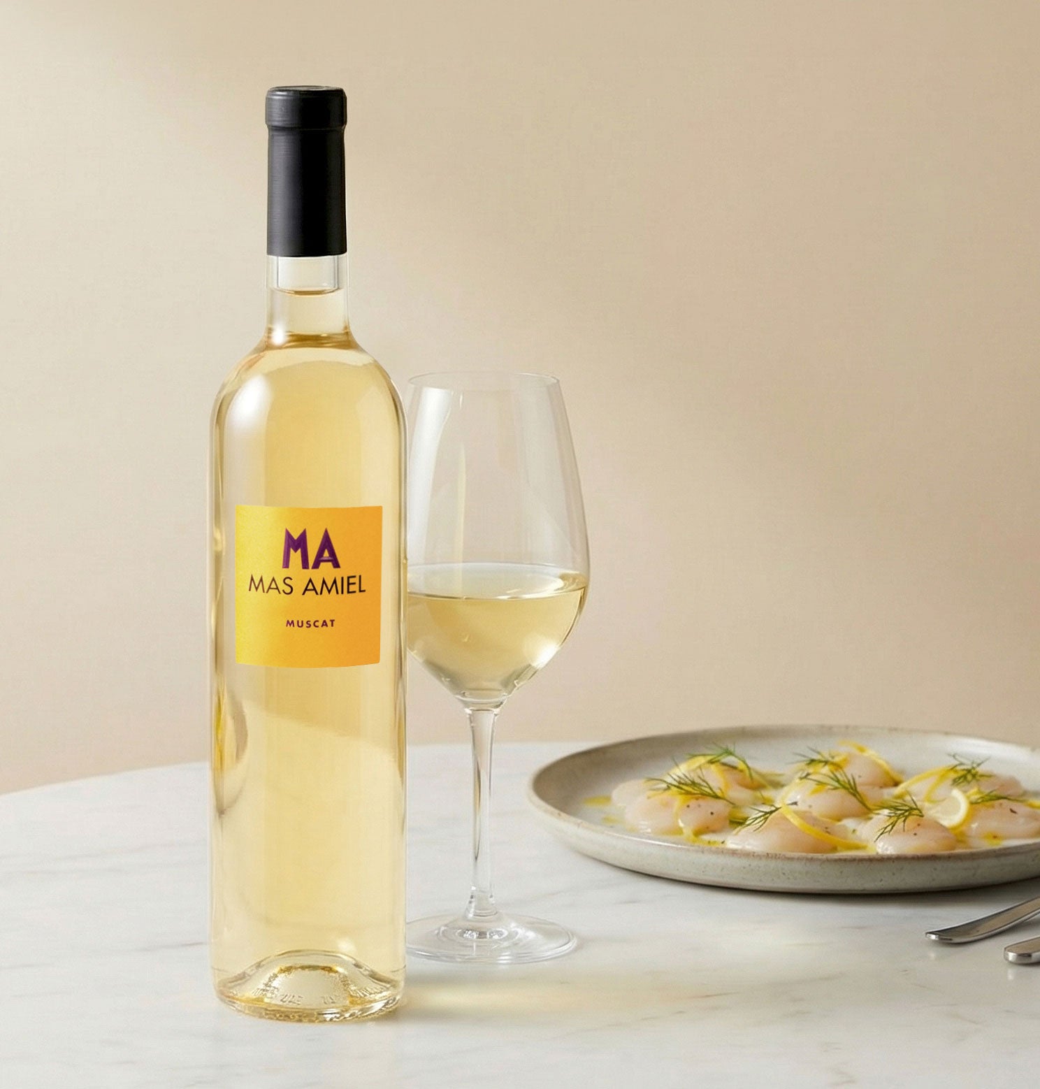 Signature du Mas Amiel, ce vin conserve une fraîcheur vive et une tension remarquable, permettant des accords étonnants, notamment avec un saumon mariné ou un carpaccio de Saint-Jacques au citron.