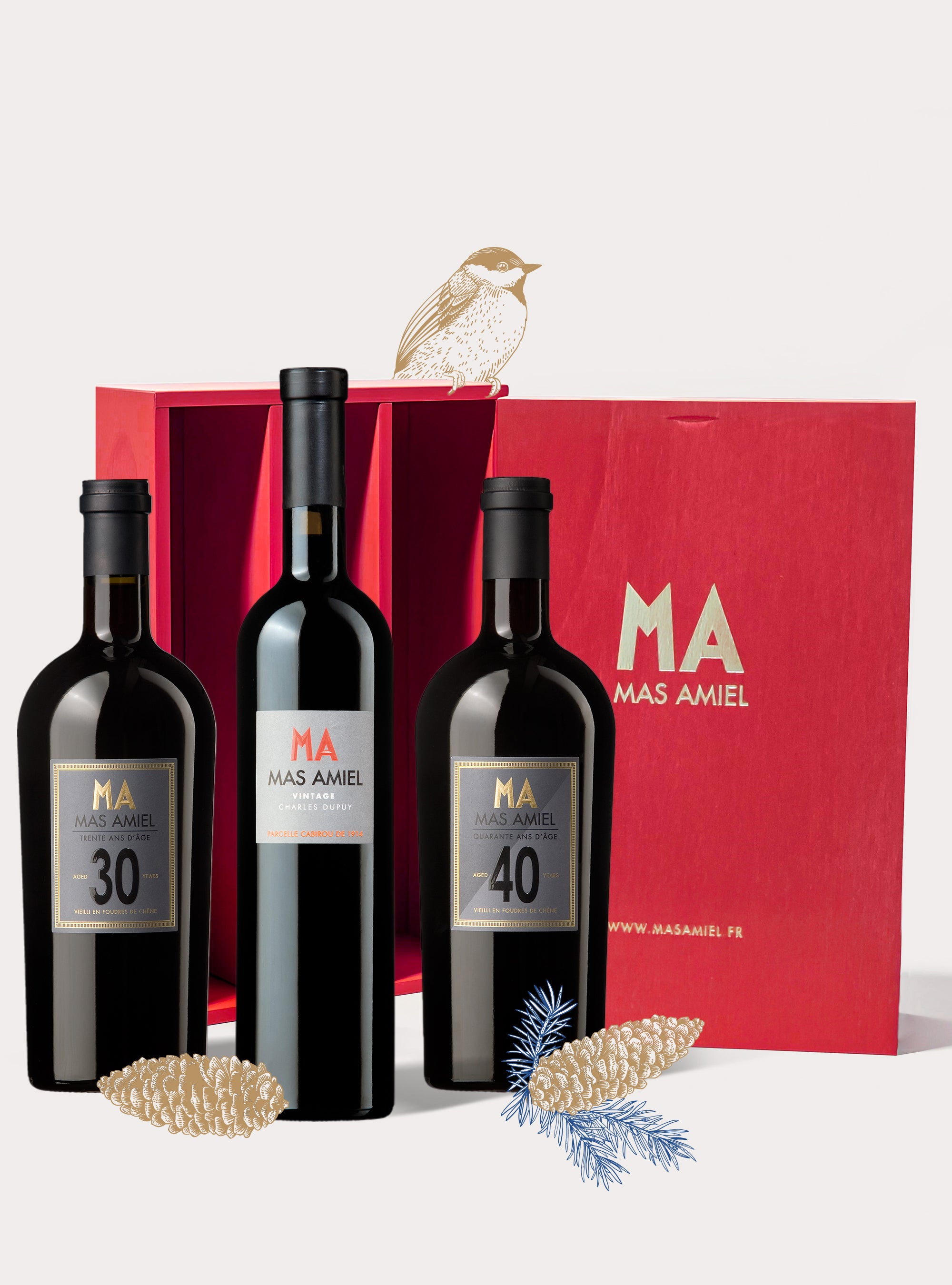 Trois cuvées du Mas Amiel pour accompagner les moments de fête : la fraîcheur précise d’Altaïr, le fruit tendre et équilibré d’Oiseau Rare, la profondeur élégante d’Origine. Un ensemble harmonieux pour un Noël gourmand et authentique.